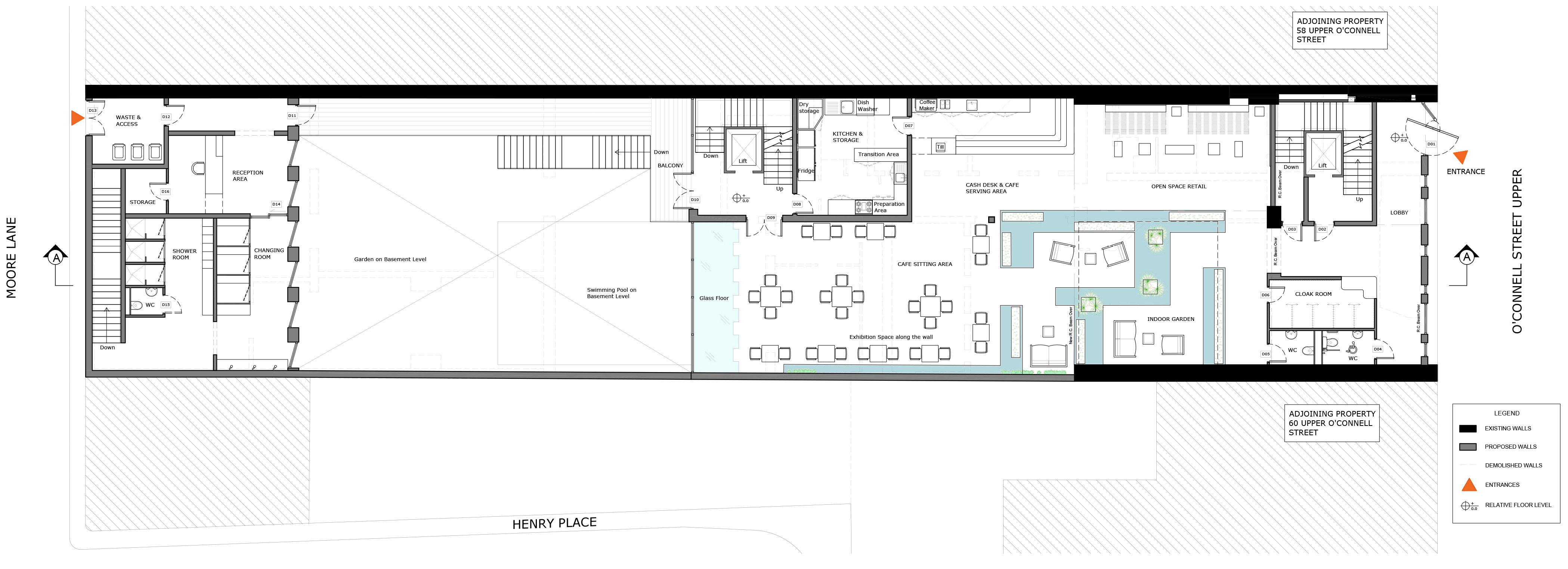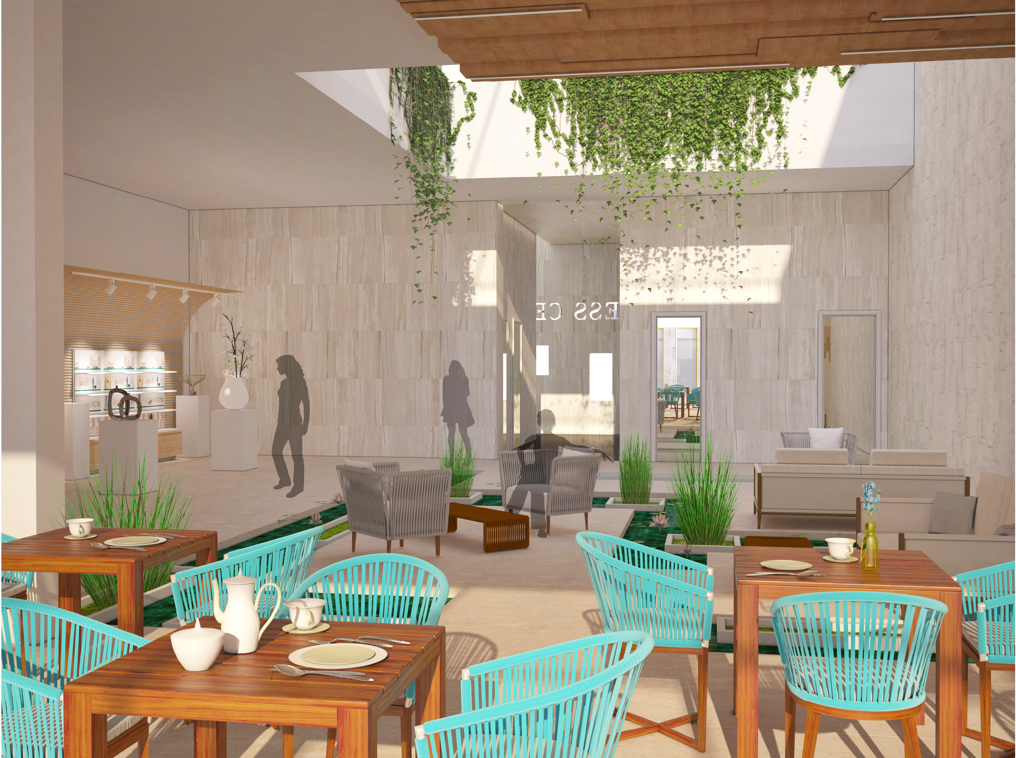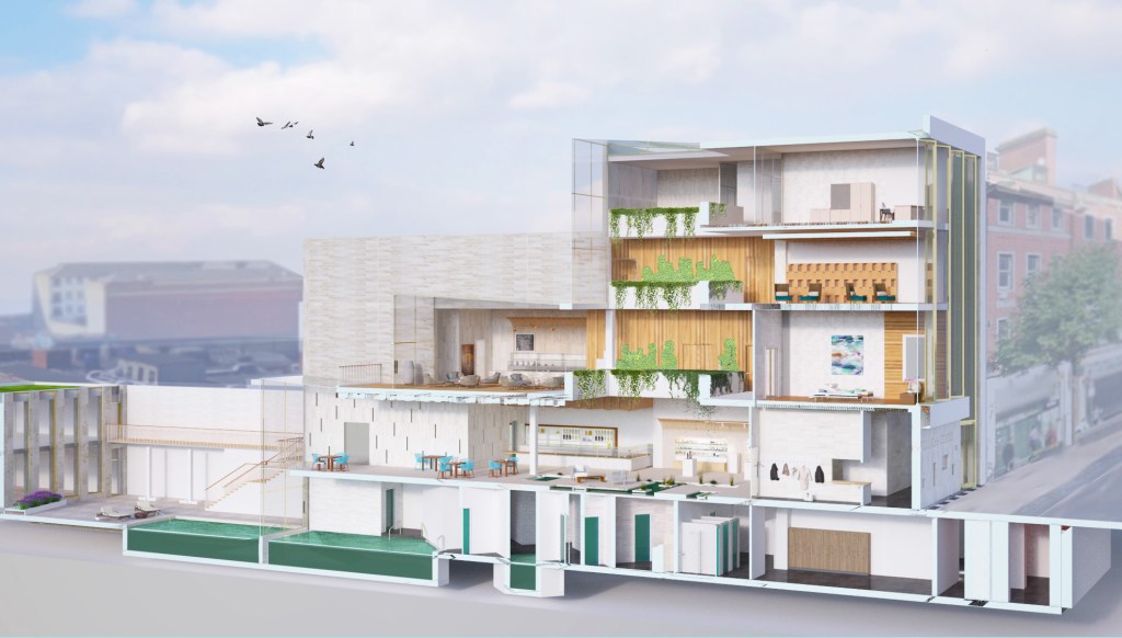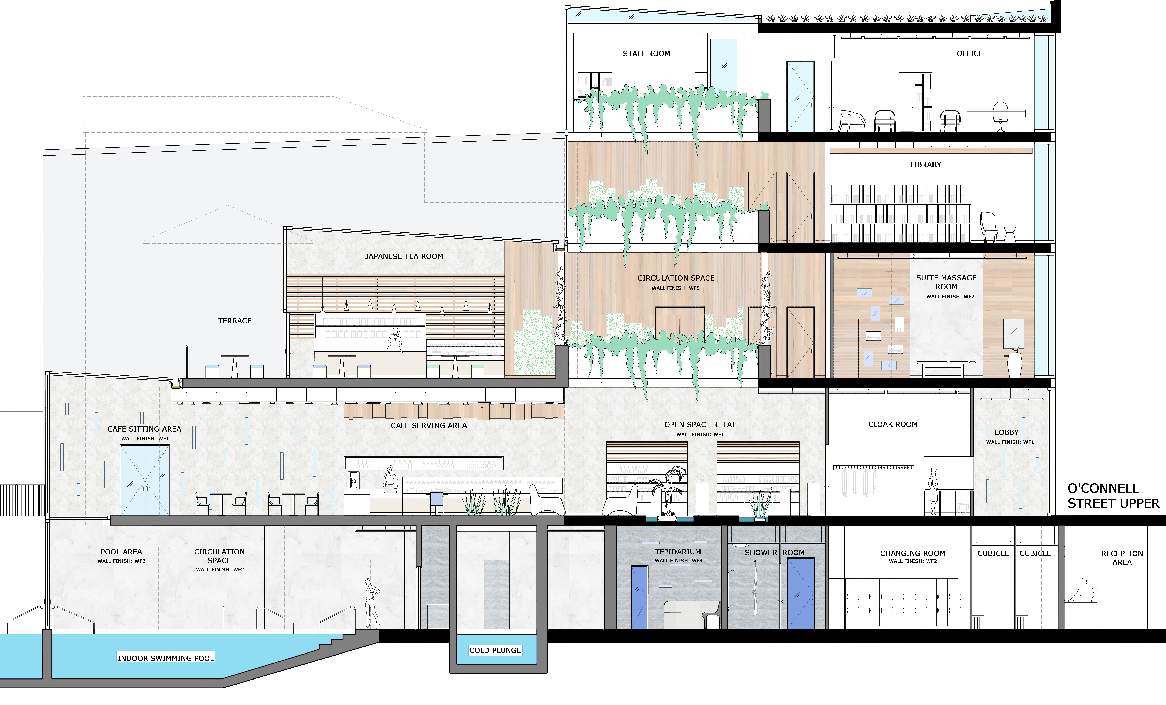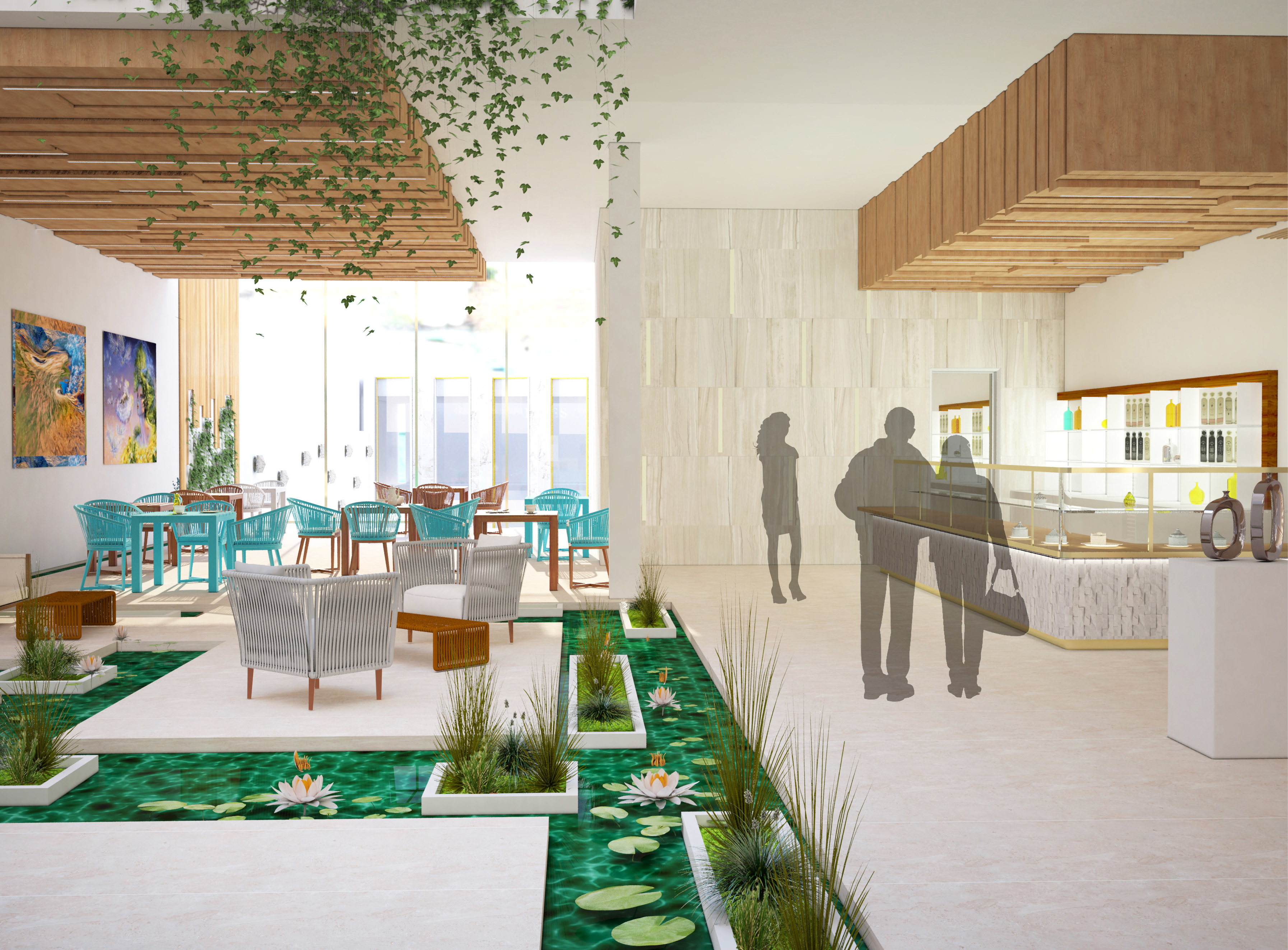 The concept was “Window into nature”. The idea was inspired by the design philosophy, called Biophilic Design that emerged in 1970’s. The term Biophilia means an innate love of life and the living world. I wanted to create a nature retreat in the middle of O’Connell Street, where people could relax and have a break from a busy street life. This idea developed into a wellness centre that would incorporate an indoor garden, spa centre and a cafe.